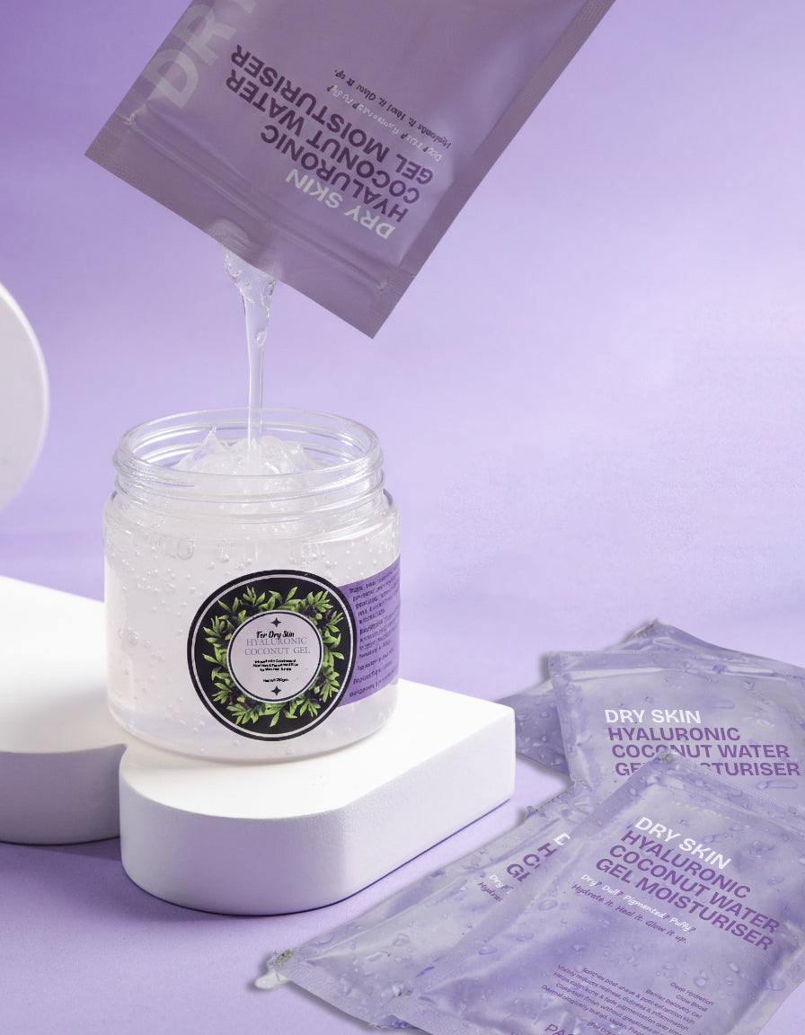 Our premium concoction in Hyaluronic Coconut Gel provides multiple benefits to your hair, skin, nails, and feet! Made with purely natural products like Coconut Water, Aloe Vera Leaf Extract, and Rose Geranium Essential Oil, this gel hydrates, moisturises, lightens and smoothens.