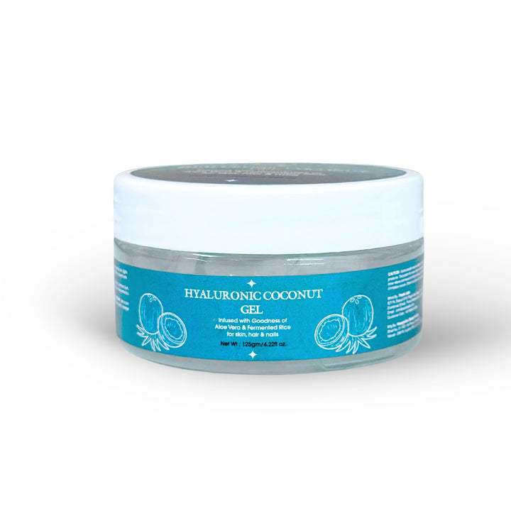 Our premium concoction in Hyaluronic Coconut Gel provides multiple benefits to your hair, skin, nails, and feet! Made with purely natural products like Coconut Water, Aloe Vera Leaf Extract, and Rose Geranium Essential Oil, this gel hydrates, moisturises, lightens and smoothens.